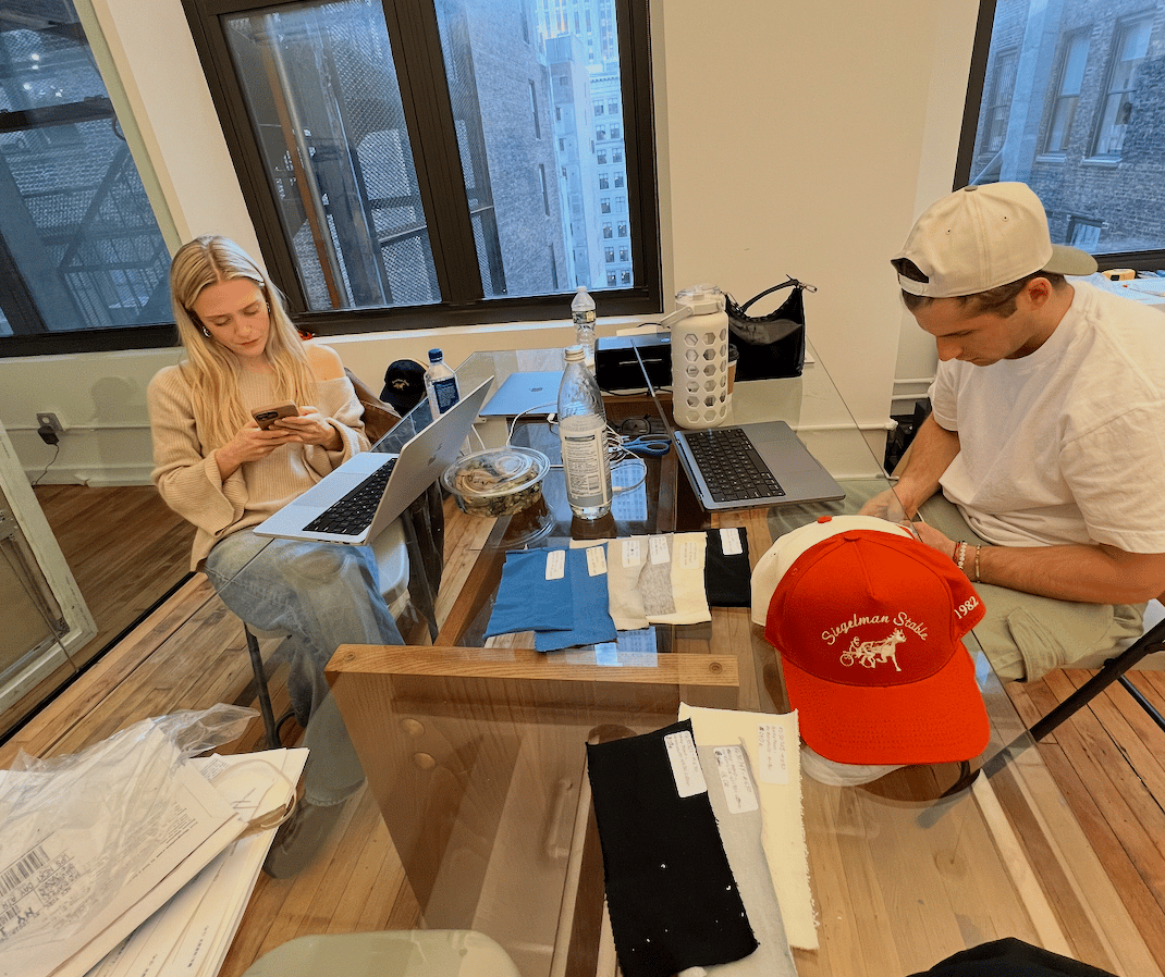 Originally, he was just creating hats for his family and friends. Think- matching shirts for a trip to Disney, Christmas PJs, or family reunion shirts - just a touch more elevated. Soon, outside interest pushed him to slowly start to expand and begin putting the product up for sale. Some of his early days were spent sending out inquiries and packing up hats in his studio apartment to ship out to various power players across the sports world, music industry, and other key public figures in hopes that someone would like the merch enough to wear it. As things started to take off, so high was his output of shipping boxes that Max gifted custom hats to the local UPS driver who handled the shipments.